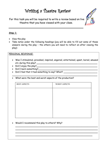 Play review essay sample - thesiscompleted.web.fc2.com from 2.bp.blogspot.com There are two parts to this framework: John's critique of the prime minister's policy was scathing. Your main goal is to show whether or not the author provided reasonable arguments and facts for their main points. Drag the phrases to make correct sentences. What is an example of critique in a sentence? To write a play review, start by taking notes during the show and writing a rough draft right afterward to capture your strongest thoughts and impressions. Martin luther king's i have a dream speech? However, you may still need a.