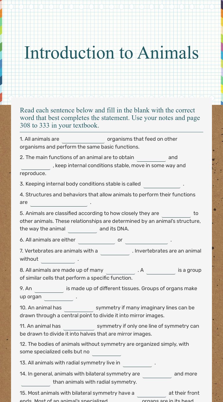 Ask your students to pick an invertebrate. Learn vocabulary, terms and more with flashcards, games and other study tools. Work sheet on introduction to inverta brate : You can do the exercises online or download the worksheet as pdf. Two variations of cnidarian body plan?